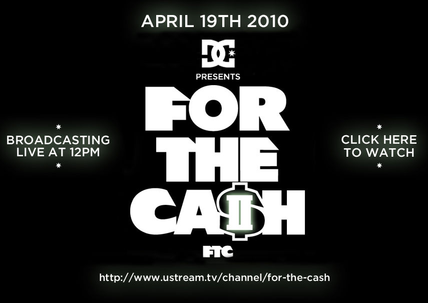 Gegen 21 Uhr* kann jeder live dabei sein, wenn im FTC Skateshop San Francisco ein ganz besonderer Contest veranstaltet wird, der "For the Cash 2" Event. (*Contest ist für 12pm angekündigt, 21 Uhr deutscher Zeit).