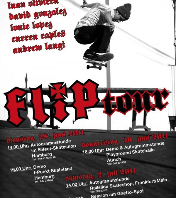 Das Flip Skateboards Team geht wieder auf Deutschland Tour. Mit dabei sind Tom Penny, Luan Oliviera, David Gonzalez, Louie Lopez, Curren Caples und Andrew Langi.