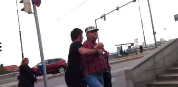 Wir können zwar kein Finnisch, aber auf YouTube schreiben Landsmänner des Betrunkenen eine Übersetzung für uns Ausländer: "Fuck! Fuck! Geh zurück in den Iraq! Fuck! Wir brauchen dich nicht in Finnland. Du hast keine Zukunft? Du blöder Surfer!?"