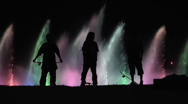Dies dürfte der Videoclip des Jahres sein, der die beste Atmosphäre hat! Hauptelement ist ein riesen Springbrunnen, der von bunten Scheinwerfernbei Nacht angestrahlt wird. Dieses Schauspiel haben sich drei Skater zunutze gemacht.
