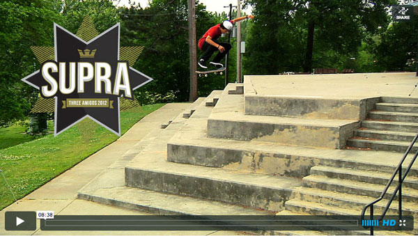 Fountain Valley, CA–The second annual Three Amigos Tour video–featuring the 2012 Amigos: Neen Williams, Keelan Dadd, and Boo Johnson–was released today at suprafootwear.com. The mucho grande tour, which also included Kevin Romar, Spencer Hamilton, Pat Rumney, and Nick Tucker, blazed trails through the dirty south and took the team from Texas to Florida.