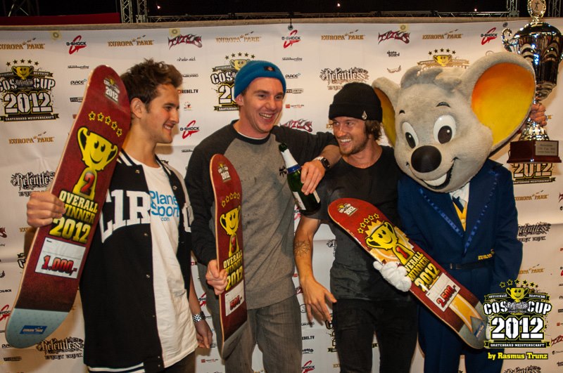 Vorhin ist im Europa-Park in Rust die Deutsche Meisterschaftim Skateboarden 2012 zu Ende gegangen: Was für ein Wochenende! Der Europa-Park in Rust wurde seinem Namen als Erlebnispark mehr als gerecht. Zwischen Achterbahnen und Halloween Schmuck soweit das Auge reicht, wurde ein Skateboard Feuerwerk der Sonderklasse abgefeuert. Louis Taubert landete zum vierten Mal in Folge auf dem Siegertreppchen. In Hemer, Köln, Münster und Rust zeigte er allen anderen, dass er in dieser Saison die Nase vorne hat und gewann damit mehr als verdient den diesjährigen Titel des offiziellen Deutschen Meisters im Skateboarden.