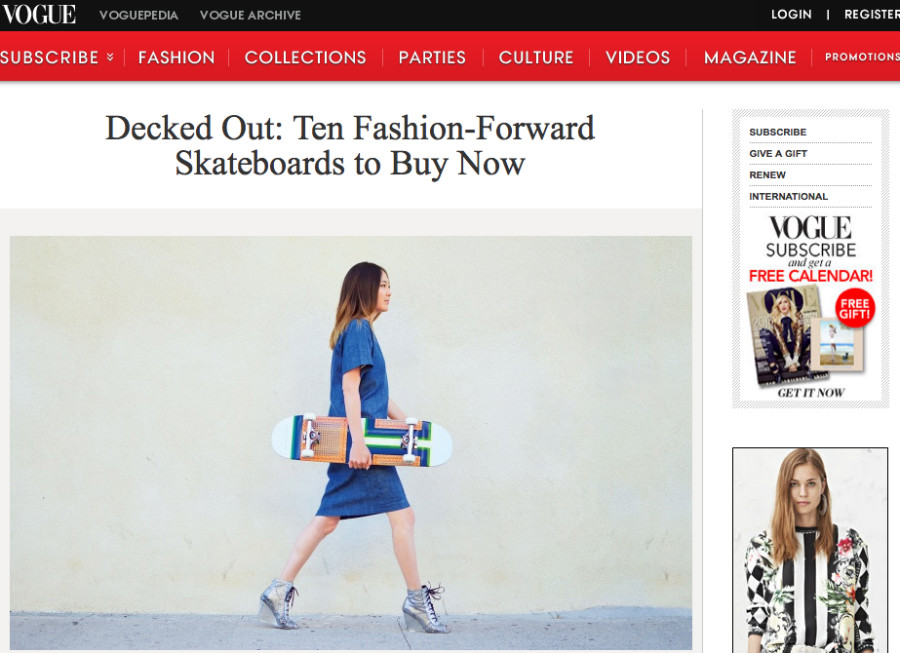 Was ist in der Fashionwelt los? Das Vogue Magazine hat einen Shoppingführer für Skateboardbretter veröffentlicht! Kling komisch, ist es auch, schließlich kann die Schickerie nicht irgendwelche Boards kaufen, nein, es müssen schon 6.000 Euro treure Planken sein.
