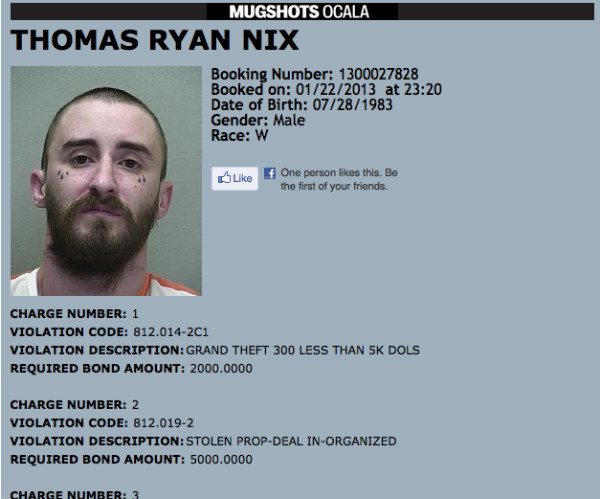 Von Ryan Nix hat man lange nichts gehört. Ende Januar wurde Nix von der Polizei in Ocala festgenommen. Er soll 4.000 US-Dollar von dem Bankkonto seines Vaters geklaut haben.