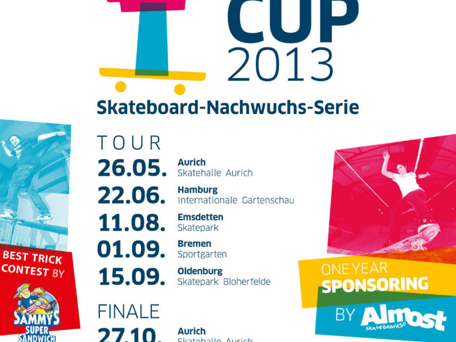 Wir sind nur noch einen Stopp vom großen Finale in Aurich entfernt. Am 15. September sehen wir uns in Oldenburg/Eversten im neuen Skatepark. Die Betonlandschaft misst ca. 330 qm und wurde erst vor kurzem fertiggestellt. Angeordnet als Dreieck, bietet der Park ideale Contest-Bedingungen für eure Runs mit diversen Obstacles.