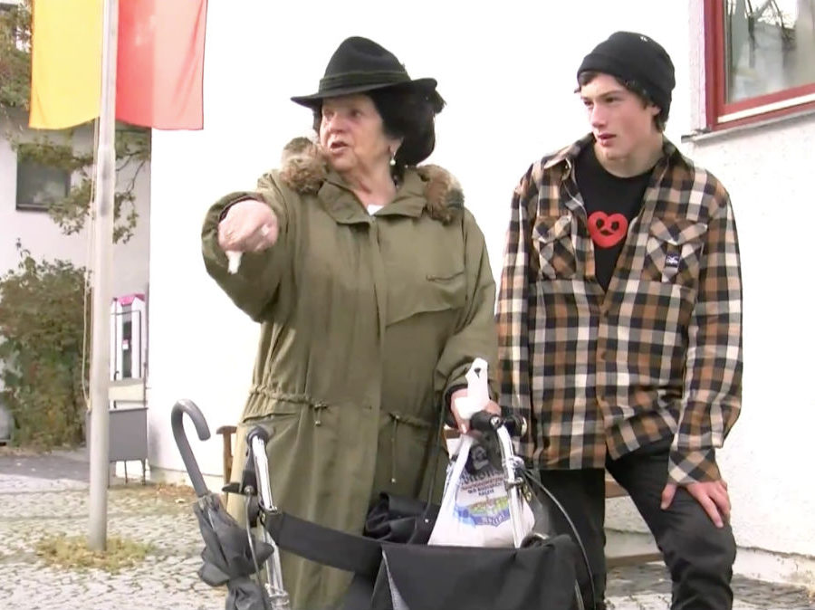 Eine Oma aus Bayern flippt vor laufenderKamera aus. Hat die etwa ein Problem mit den Skateboardern? Da fallen sofort Aussagen wie "ihr ollen Ausländer wo komts denn her" und "isch ruf gleich die Polizei" :
