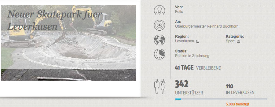Die lokalen Skateboarder wollen sich jetzt mit Hilfe einer Onlinepetition wehren. Der Park ist sicher nicht mehr zu retten, die Abrissbagger haben bereits gute Arbeit geleistet, doch für einen Ersatz lohnt es sich auf jeden Fall zu kämpfen.