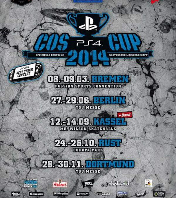 Die Termine für den COS Cup,die Deutsche Skateboard Meisterschaft, stehen fest und wurden veröffentlicht. Der Auftakt zur neuen Season beginnt in Bremen und das große Finale steigt wie im letzten Jahr auf der You Messe in Dortmund. Wodrauf ich sehr stolz bin, Boardstation.de – Skateboardnews.de ist wieder Medienpartner.