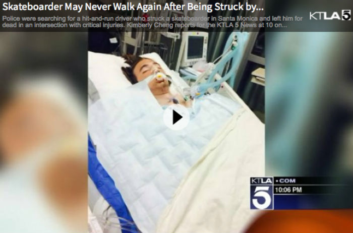 Die Polizei von Santa Monica suchtseit Dienstag einen Autofahrer, der einen Skateboarder umfuhr und vom Unfallort flüchtete.