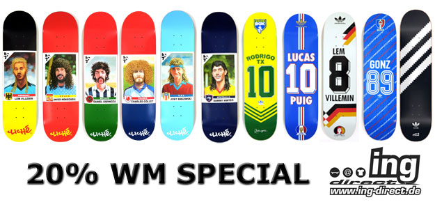 Passend zum Start der WM hat der Ing-Direct Mailorder ein Angebot auf diese Boards! 20% Rabatt gibt es auf dieser Boards. Sogar die limitierten Cliche – Adidas Planken sind dabei …