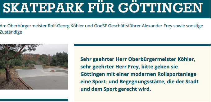 In Göttingen sieht es skateparktechnisch sehr schlecht aus. Damit sich das ändert, wurde eine Onlinepetition gestartet: