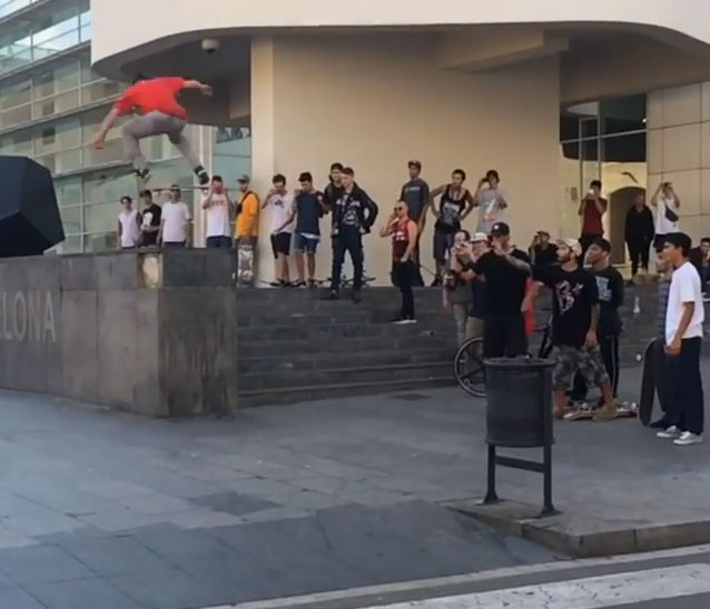 What the fuck, Kristian Krasimirov ballert einen 360 Ollie das MACBA Gap runter. Mindblowing.