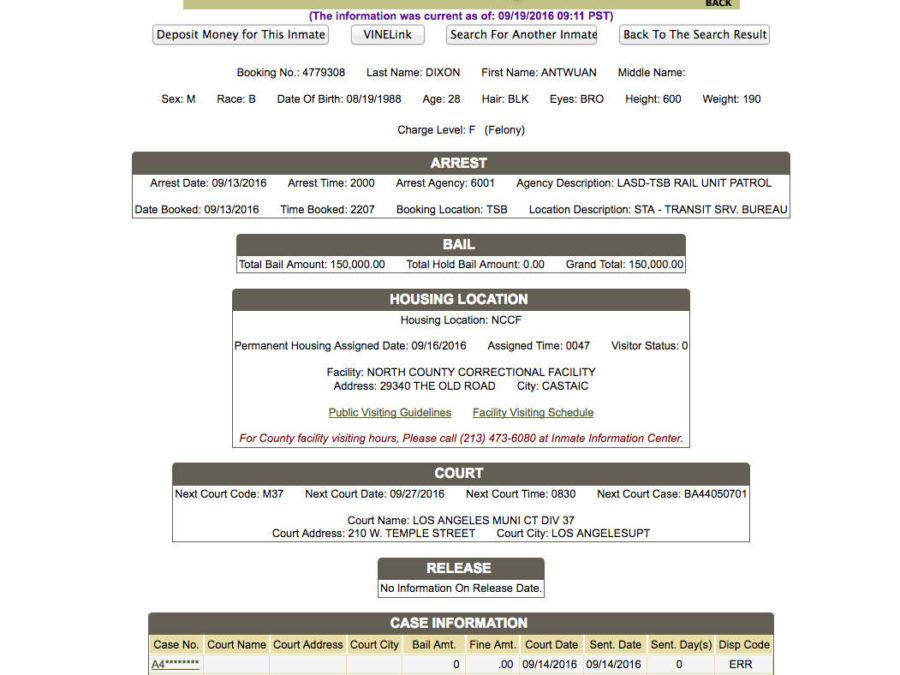 Warum Dixon im Knast sitzt, ist nicht genau bekannt. Aus der Datenbank des Los Angeles Sheriff Department kann man nur erfahren, dass Antwuan wegen einem "Verbrechen" vom 13.09.2016 einsitzt.