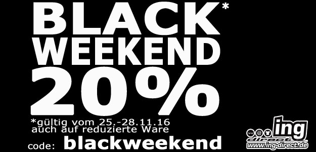 Black Friday und überall gibt es Angebote, aber nur für einen Tag. Die Jungs von ING machen das ganze Wochenende "Black Weekend" mit 20% auf alles im Webshop.