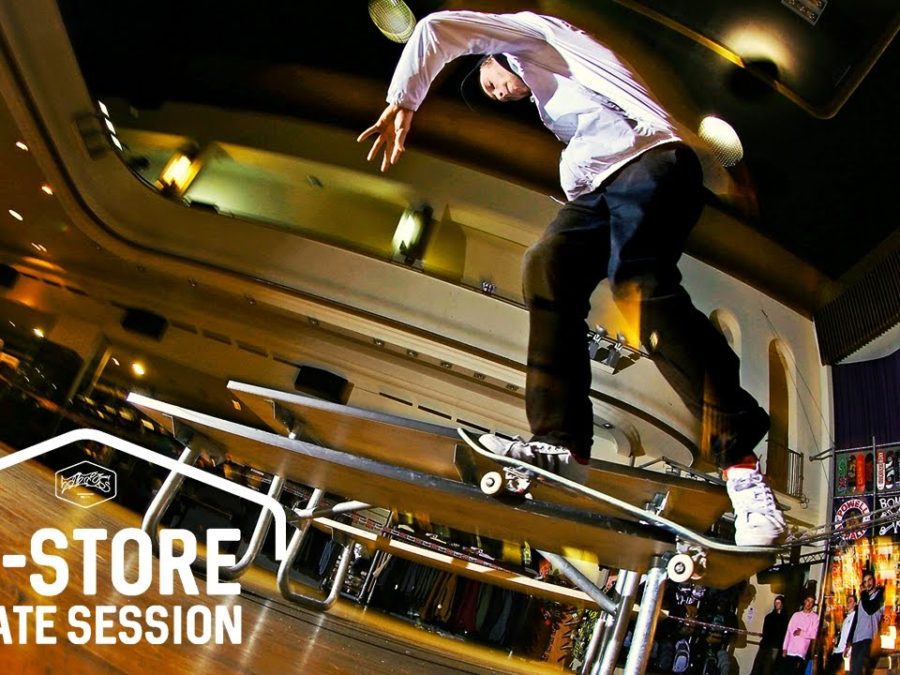 Nach Feierabend gibt es dann immer wieder gerne eine Skatevideo-Premiere, ein Feierabend Bier oder eine In-Store Skate Session, wie sie erst kürzlich stattfand. Dazu wurden alle Warenträger zur Seite geschoben, unser Picknick Table in die Mitte gestellt und eine Quarter in die Ecke gebaut. Die Türen standen dann bis 23 Uhr für alle Skateboarder und Zuschauer offen.