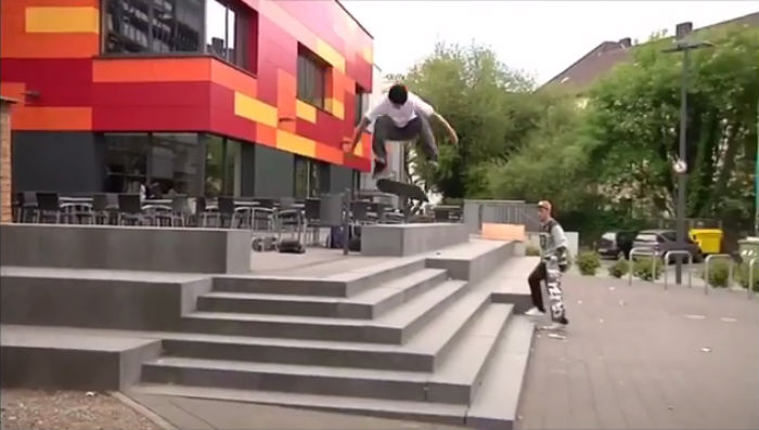 In Aachen soll er mit einer „SK8DLX Decade Collection“ Planke gesichtet worden sein (siehe Videos unten).