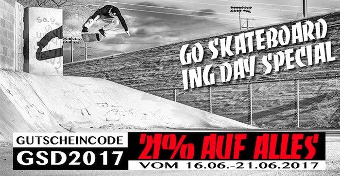 ING DIRECT haut ein fettes SPECIAL zu Ehren des GO SKATEBOARDING DAYs raus! Es gibt vom 16.06.-21.06. satte 21% Rabatt auf ALLES, auch auf bereits reduzierten Stuff! Egal ob Deck, Rollen oder Achsen, Schuhe oder Klamotten, Caps oder Badetücher, Longboards oder Completes, egal ob Spitfire oder Thunder, Element oder Diamond, neu oder reduziert: Es gibt 21% Rabatt!