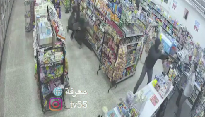 Was eine Überwachungskamera aufgezeichnet hat ist unglaublich: Ein Räuber überfällt mit einer Pumpgun einen Supermarkt und wird von zwei Skateboardern „angegriffen“.