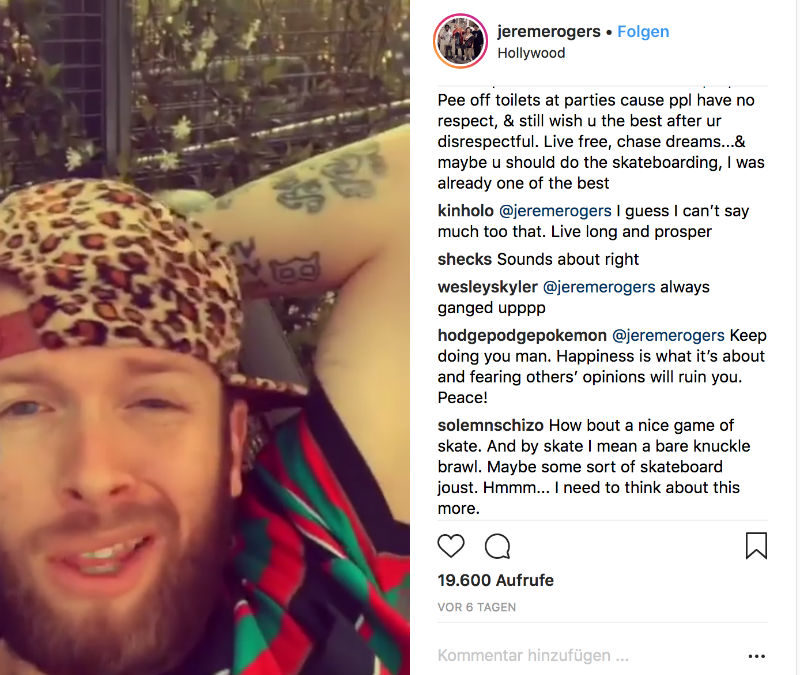 Nachdem Jereme Rogers scharf gegen Nyjah Huston in zwei Instagram Videos „geschossen“ hat, ließ Nyjahs Reaktion nicht lange auf sich warten. Allerdings ging Huston nicht direkt auf die Vorwürfe ein und schrieb als Antwort unter das Video kurz und knapp, Jereme habe seinen Verstand verloren: