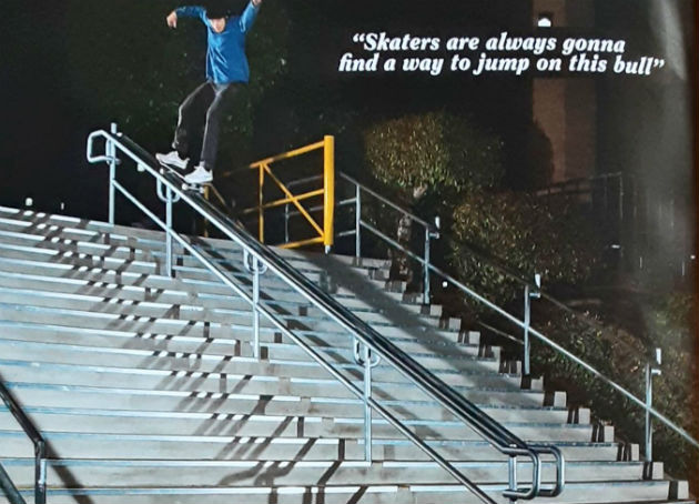 After the renovation, skate stoppers were installed in the form of grooves on the floor. You can see the photos of Don Brown here.