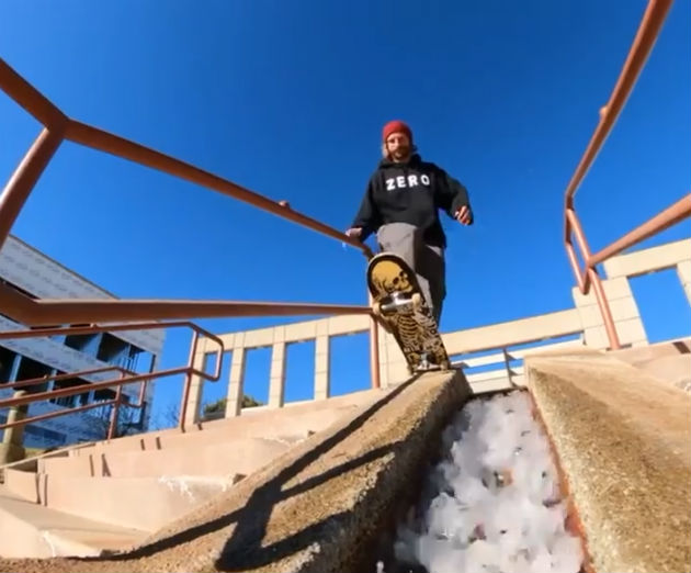 Und in dem Video Nummer zwei trägt der Grizzly Griptape Teamfahrer erneut einen unübersehbaren Zero Sweater bzw. einen Hoddie. Auch seine Holzplanke scheint von der Jamie Thomas Company zu sein.