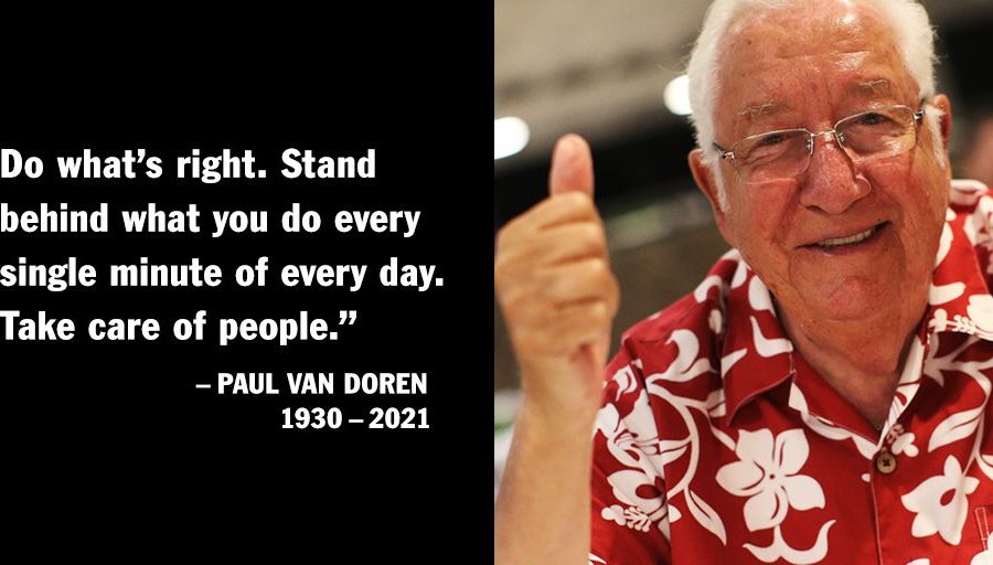 It’s with a heavy heart that Vans announces the passing of our co-founder, Paul Van Doren. Paul founded the Van Doren Rubber Company with his brother Jim, and their partners Gordon Lee & Serge Delia in Anaheim, CA in 1966. Paul was not just an entrepreneur; he was an innovator. The Van Doren Rubber Company was the culmination of a lifetime of experimentation and hard work in the shoe industry. Paul’s bold experiments in product design, distribution and marketing, along with his knack for numbers and efficiency turned a family shoe business into a globally recognized brand. We send our love and strength to the Van Doren family and all the Vans Family members who brought Paul’s legacy to life.