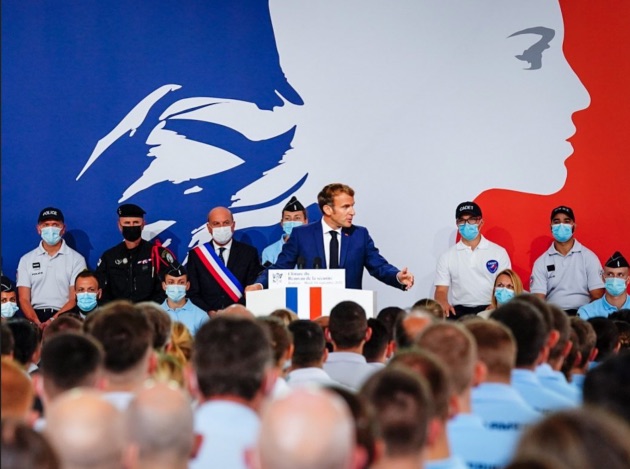 In einem Saal des Elysée-Palastes erwähnte Macron während seiner Rede Skateparks! Die Schaffung von „mehreren tausend Basketballplätzen“, „Dojos“, „Skateparks“, „Schwimmbädern“, sei für ihn ein wichtiges Anliegen.