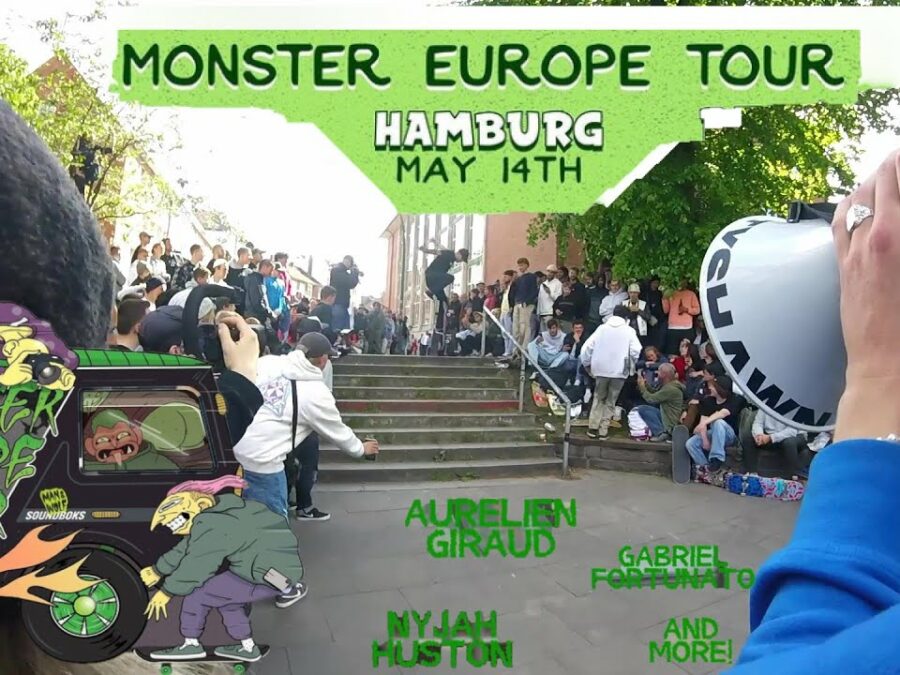 Wie hier angekündigt, besuchte das Monster Energy Team mit Ishod Wair, Nyjah Huston, Grant Taylor, Kelvin Hoefler, Rune Glifberg und Justin Sommer Hamburg.