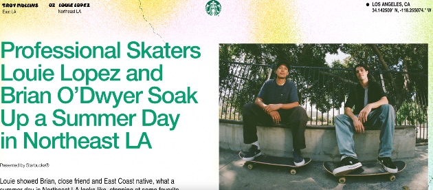 Um das Ganze in Szene zu setzen hat Starbucks auch gleich mal dick Geld für einen gesponserten Artikel auf Hypebeast (Link) bezahlt und stellt das neue Kaffee Duo vor. Ob wirklich jeder Skateboarder die Kaffekette liebt, wie es Louie behauptet?