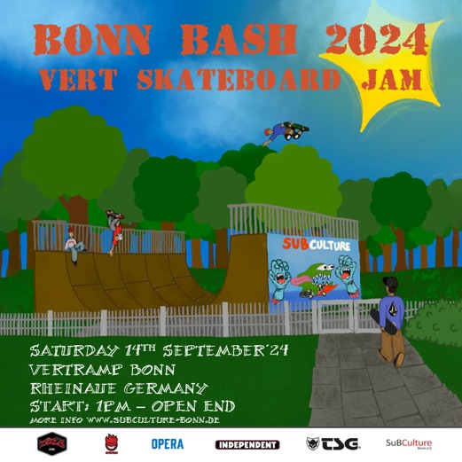 Am Samstag den 14.09.24 setzen wir die Bonner Vert Skateboard Tradition fort und laden alle Vert Shredder ein, mit uns den BONN BASH 2024 zu feiern.