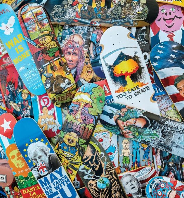 In einer Zeit, in der die politischen Spannungen in Europa und die bevorstehende Präsidentschaftswahl in den USA die gesellschaftlichen Diskurse prägen, lädt das SkateboardMuseum Berlin zur Eröffnung seiner neuesten Ausstellung „WEAPON OF CHOICE: United we SKATE – Divided we SLAM!“ ein. Diese außergewöhnliche Schau beleuchtet die tiefgreifenden Verbindungen zwischen Skateboarding, Kunst und Politik und kritisiert die sozialen Verwerfungen unserer Zeit.
