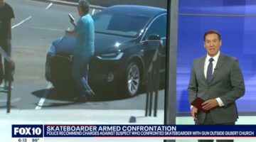 Schock während der Skate Session! An einer Kirche im US-Bundesstaat Pheonix war ein Skateboarder am skaten als ein Tesla Fahrer auf dem Parkplatz