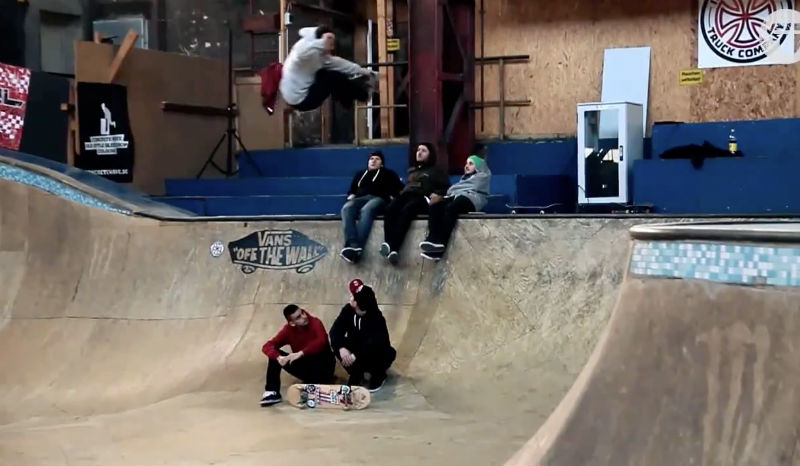 Die Düsseldorfer Skatehalle erschien Thilo Nawrocki, Alex Ring, Pascal Tawadros, Ilya Merkushev, Maurice Broexkes und Björn Berchtenbreiter (im Clip ohne Nameseinblendung, aber mit dicken Tricks) zur Überwinterung schon geeigneter, zumal alle zufällig auch noch Angehörige des Titus Düsseldorf Shop-Teams sind.