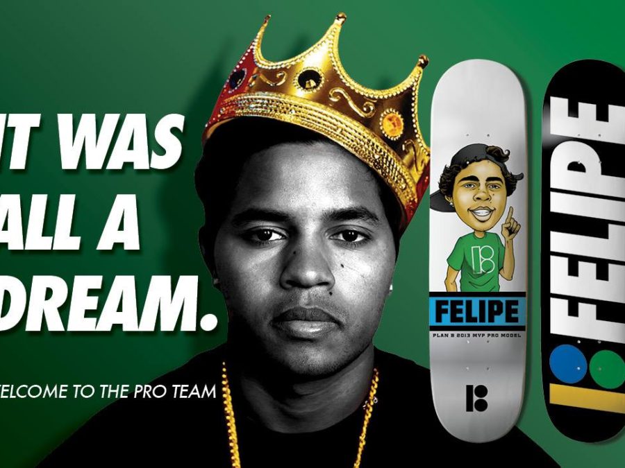 Felipe Gustavo ist absofort ein Pro Fahrer von Plan-B Skateboards. Ich hätte zwar schwören können, dass er schon längst Pro ist, aber gut, hier kommt sein Pro Clip von Plan-B: