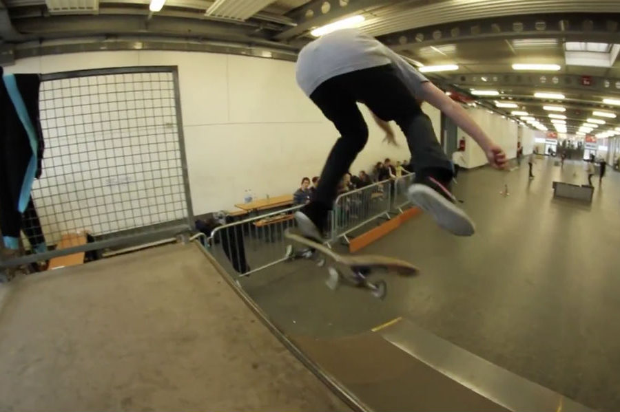 Henry Gebhard steht mit seinen 13 Jahren einen Nollie Bigspin Backside Disaster Revert. Von dem kann man noch einiges erwarten …