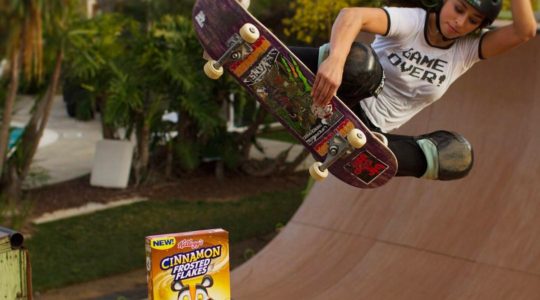 Birdhouse Pro Lizzie Armanto scheint einen kleinen Sponsordeal mit Kellogs zu haben oder zumindest eine Werbeanzeige für „Cinnamon Forsted Flakes“ …...
