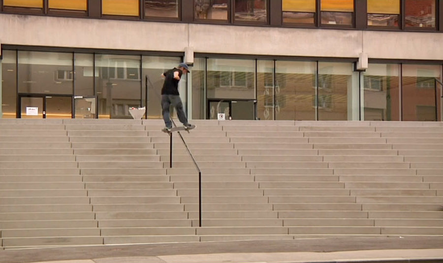 Der Österreicher Norbert Weitenbacher mit ein paar dicken Bangern, 18 Stufen Frontside Boardslide inklusive …