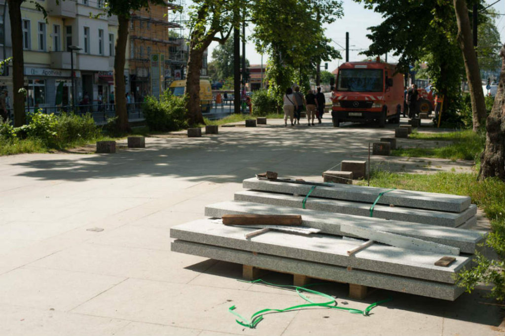 Außerdem gab es laut dem 1. Skateboardverein Berlin e.V. einen Abstimmungsfehler im Bezirksamt. Die Platten müssen leider gedreht werden, damit die bestellte 3mm-Rundung nächste Woche an die Kante kommt und nicht die gelieferte 20mm-Fase gefahren werden muss: „Seid also bitte vorsichtig, damit nicht gleich alles abplatz. Die Jungs vom Tiefbauamt geben sich extra Mühe, die schöne Seite nach Vorne zu nehmen. Die Platten werden im Moment aufgeklebt, gebt dem Kleber am besten noch den Nachmittag um auszuhärten“.
