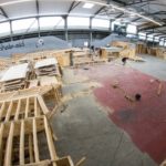 Der Parcours von Deutschlands größter Skatehalle wird komplett erneuert. Wie man unten an den Fotos sehen kann, arbeitet das Playground e.V. Team in Aurich an einen neuen Course. Hier und da kann man schon die neuen Obstacles erahnen.
