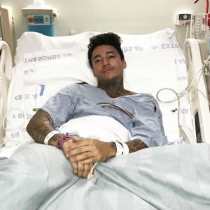 Der SLS König wurde bei einem harten Slam beim Street skaten bewusstlos! Wie die Ärzte im Krankenhaus feststellten (Foto), hatte sich der Element Pro bei den Filmarbeiten mit Ty Evans außerdem eineGehirnerschütterung zugezogen. Trotz dieses Handicaps ballerte Nyjah 10 Tage später im Finale einen Backside 270 Kickflip Lipside das große Rail runter und gewann den Contest. Wahrlich ein König.