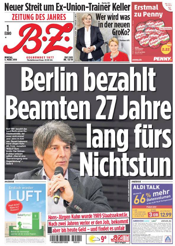 Bei Focus und Bild.de finden sich ähnliche Überschriften wie zum Beispiel „Er wurde in einstweiligen Ruhestand versetzt – Berliner Politiker war zwei Jahre im Amt – und wird 27 Jahre später noch immer bezahlt“ und „Berlin überwies ihm insgesamt 800 000 Euro“.