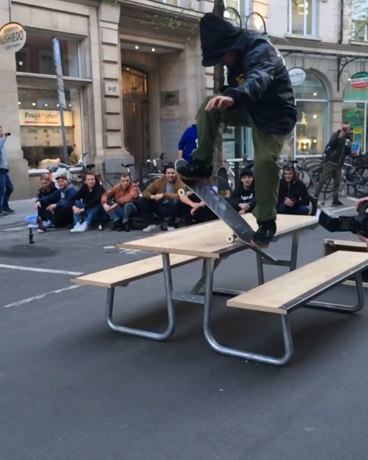 Ob es an dem Wetter lag, an der gute Stimmung oder an etwas anderem, weiß ich nicht, aber später gab es dann sogar noch vor dem Titus Skateshop eine kleine Demo an einem Picknicktisch. Geplant war das nicht, aber Chris Joslin war „on fire“ wie man unten in den kurzen Videoclips sehen kann!