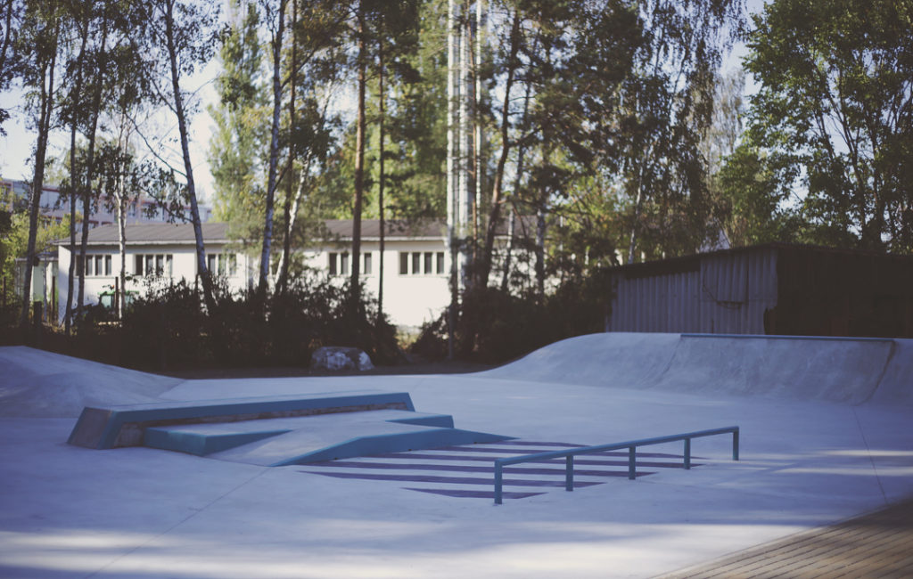 Den Park mit Quarter Pipes, Roll Ins, Banks, Hip mit Speed Bump, Ledge, Manny Pad und einem Flat Rail haben Anker Skateboard Rampen und lndskt gebaut.