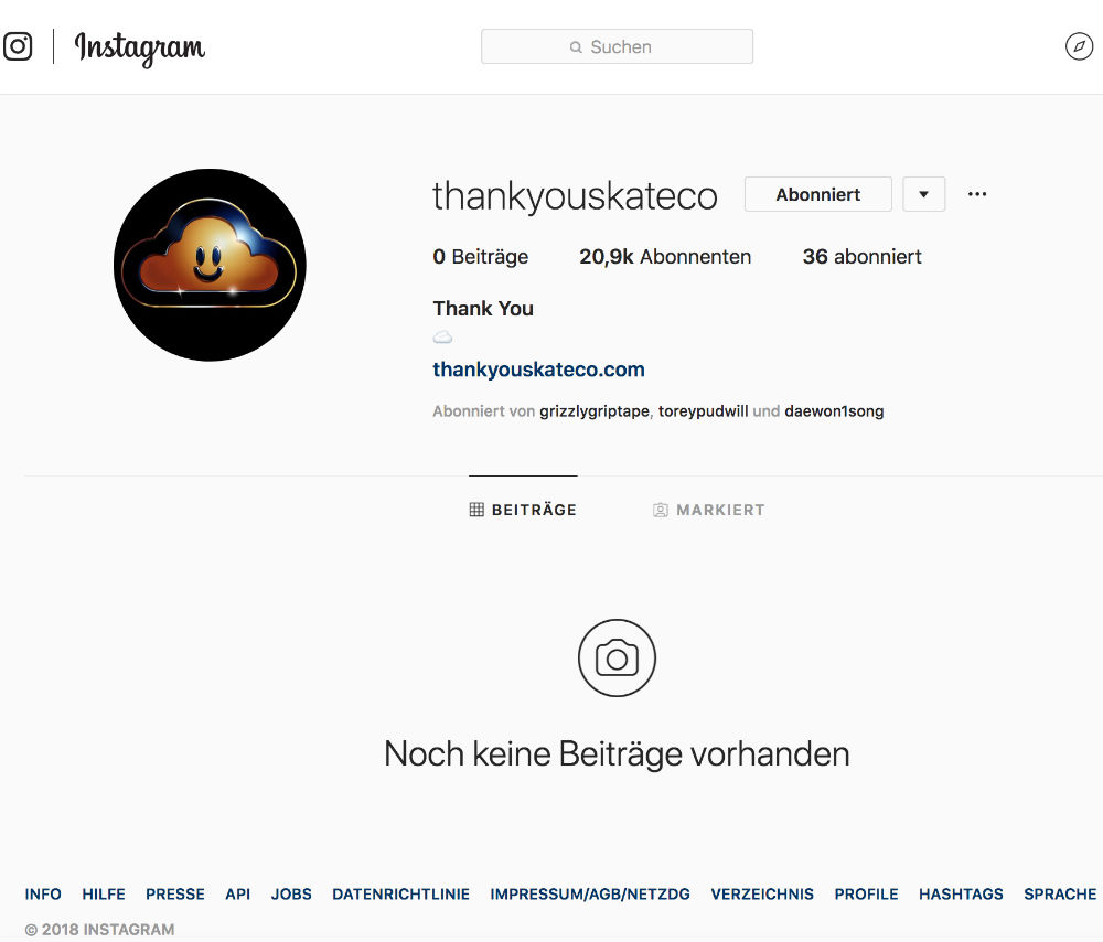 Es gibt das Gerücht, dass Torey Pudwill mit einer neuen Firma namens „Thank You Skateboard Company“ zu tun hat. Obwohl auf der Instagram Seite der Company noch kein Inhalt zu sehen ist, folgt T-Puds dem Profil. Eine Instagram Seite von einer Boardfirma die keiner kennt, die ganz neu ist, und Torey folgt ihr??? Das könnte sein neuer Sponsor sein oder sogar seine eigene Boardcompany. Das er ein Händchen für erfolgreiche Skatefirmen hat, beweist er seit Jahren mit Grizzly Griptape.