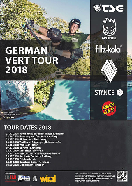 Die Suche nach den deutschen Meistern im Vert-Skaten führte von Berlin über Hamburg, Straßburg, Göppingen-Hohenstaufen, Bonn, Kempten, Bielefeld, Karlsruhe, Freiburg, Innsbruck-Zirl und Konstanz zum letzten Tour-Stopp in Bremen.