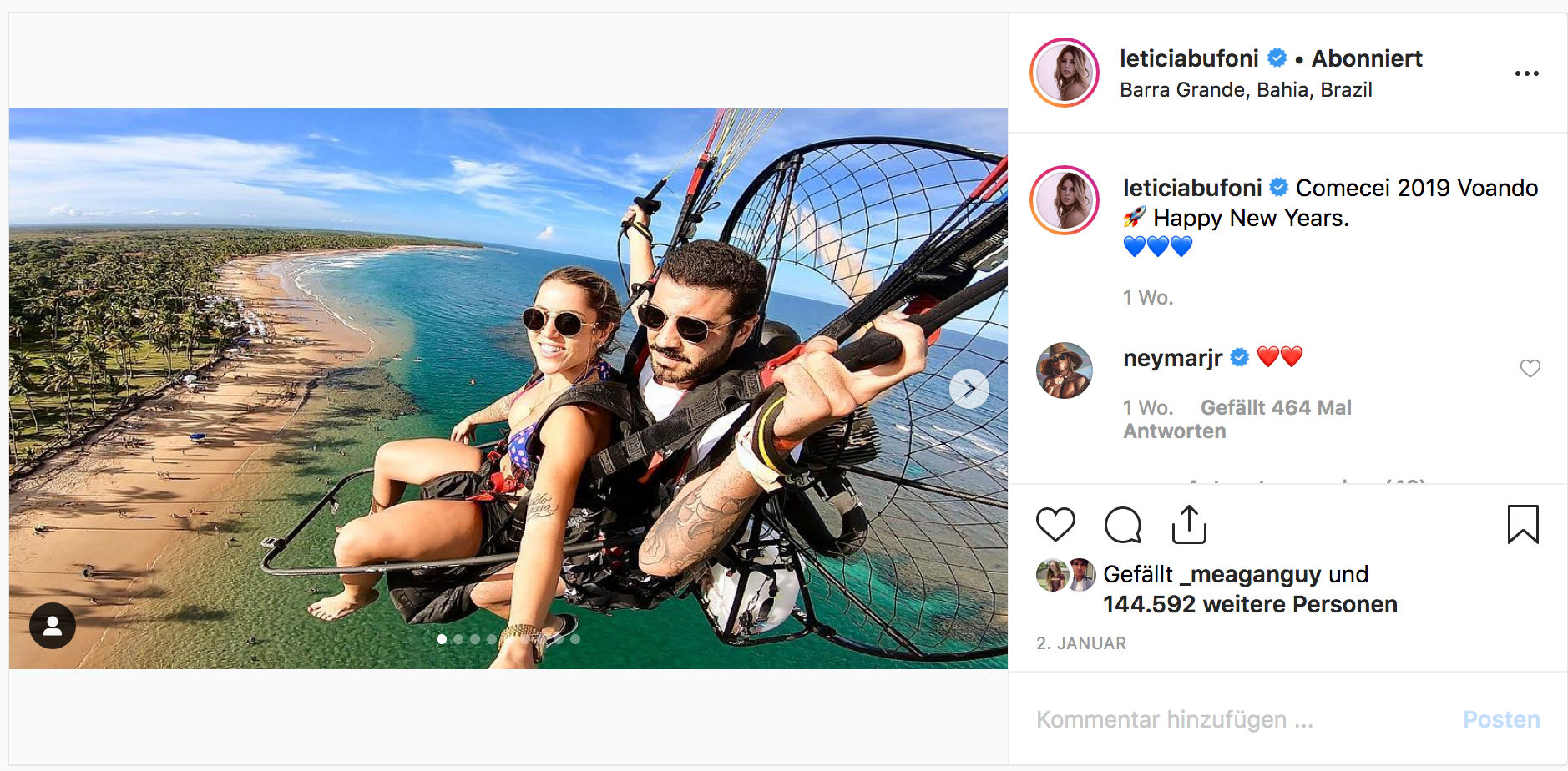 Fußball Star Neymar bestätigt Liebesaffäre mit Plan-B Pro Fahrerin Leticia Bufoni