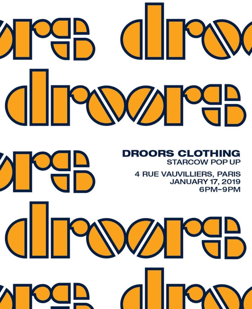 Mit dem Start der offiziellen Webseite, einer Instagram Seite und einem exklusiven Verkauf in dem Pariser (!!!) Pop Up Store „Starcow“ letzte Woche Donnerstag (siehe Flyer unten) steht fest, DROORS is back.