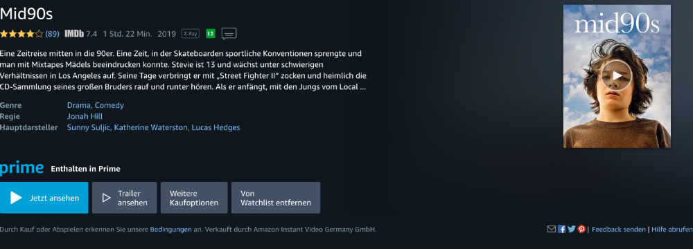 Seit kurzem können Amazon Prime Mitglieder Jonah Hills Liebeserklärung an die 90er-Jahre auf lau anschauen. Wer jetzt sofort den Film sehen möchte, klickt auf diesen direkten Link.