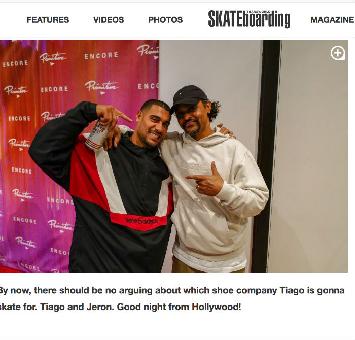 Vor und auch AUF der Primitive Skateboards „Encore“ Video Premiere konnte man Tiago in New Balance Sneakern entdecken. Damit dürfte das Rätsel um seinen Schuhsponsor gelöst sein. Hier der Fotobeweis von TransWorld Skateboarding: