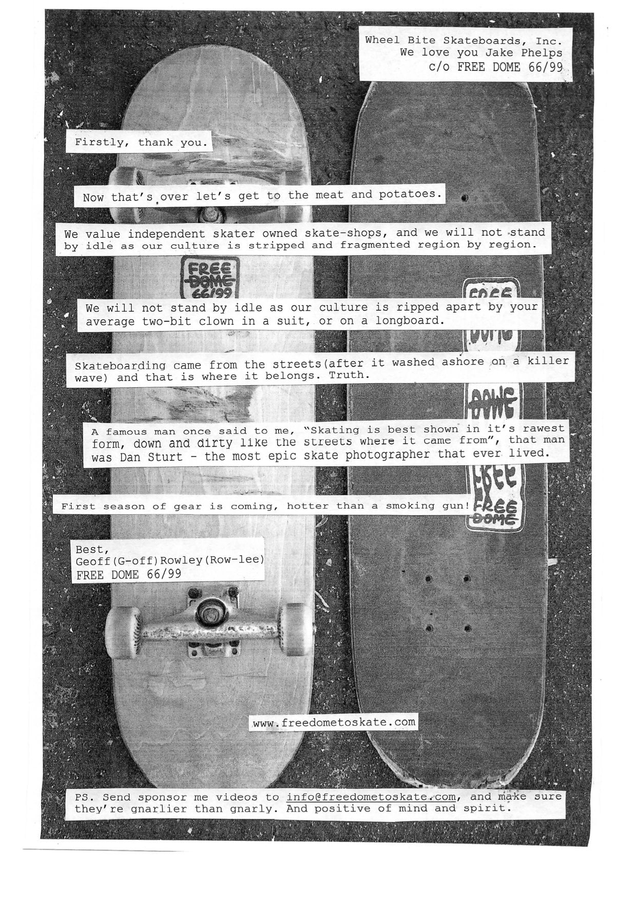 Geoff Rowleys neue Firma „Free Dome“ Skateboards in Deutschland